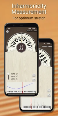 • Swipe in the graphing area to show a live frequency spectrum or the inharmonicity of measured notes.