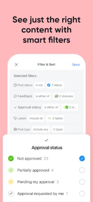 - Review and approve posts on the go (none, optional, mandatory, multi-level)