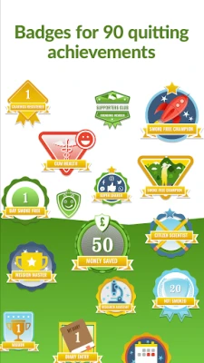 • Achievement Badges – Quit smoking and earn badges for your achievements.