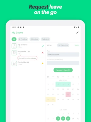 The staff leave app makes booking annual leave easy, letting employees request leave from anywhere. No more second guessing who's not in!