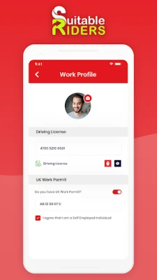 Rider Requisites: - Legal Identity: Self Employed Individual having UK Work Permit & National Insurance Number - Vehicles & Documents: Full Driving License, MoT and Road Tax, Vehicle Insurance (Hire & Reward) - Delivery equipments: Thermal bag & boxes - Smart Phone